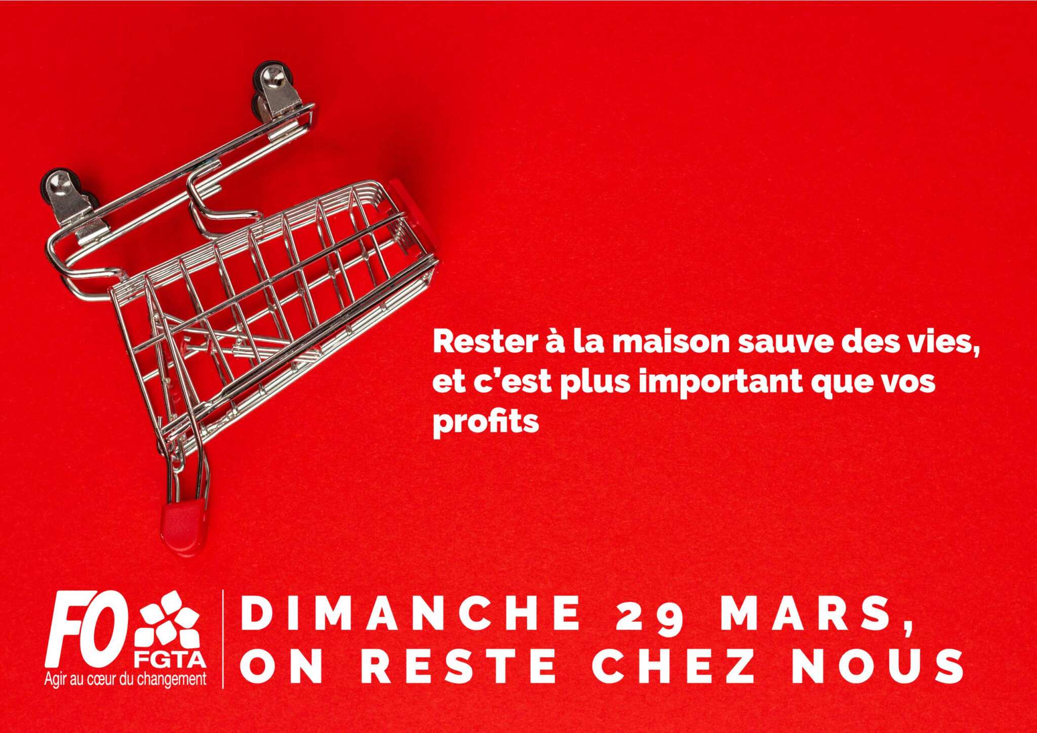 La FGTA-FO appelle donc l’ensemble des salariés de la Grande distribution à rester chez eux le dimanche 29 mars 2020.