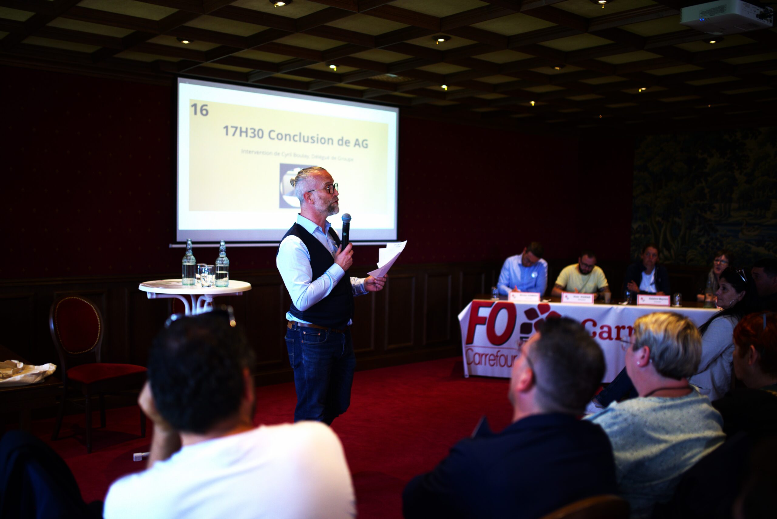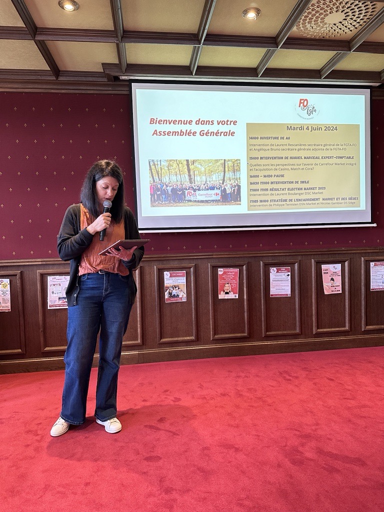 Je remercie Laurent Rescanières, secrétaire général de la FGTA-FO, Angélique Bruneau, secrétaire générale-adjointe, Cyril Boulay, permanent fédéral et délégué de groupe FO Carrefour, ainsi que les délégués syndicaux FO Market pour leurs interventions ainsi que leur présence.