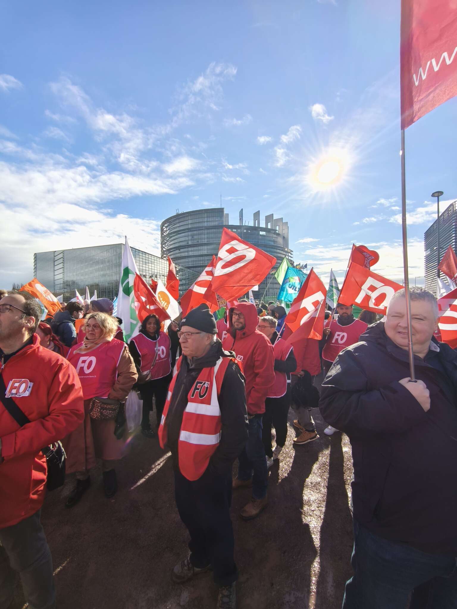 Plus de 800 personnes se sont rassemblées devant le Parlement européen à Strasbourg à l’occasion d’une manifestation conjointe organisée par l’EFFAT – dont la FGTA-FO est membre – aux côtés de l’EFBWW et de l’ETF. Des militants de l’UD 67 étaient présents pour représenter les salariés des secteurs de la FGTA-FO.