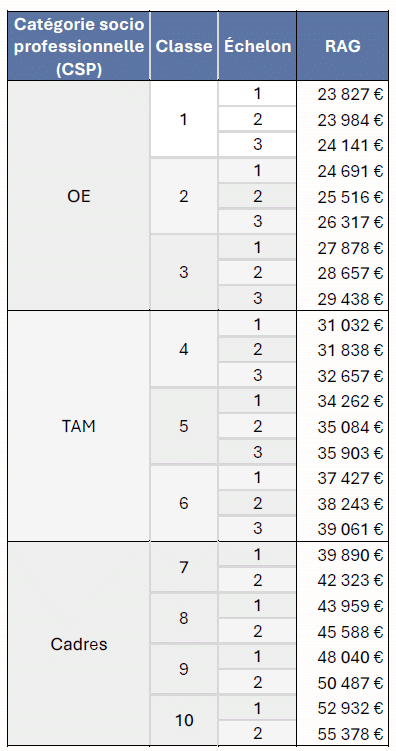 La nouvelle grille de salaires RAG applicable au plus tard au 31 décembre 2026 :