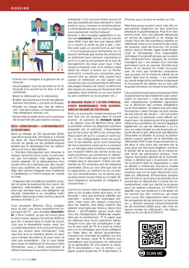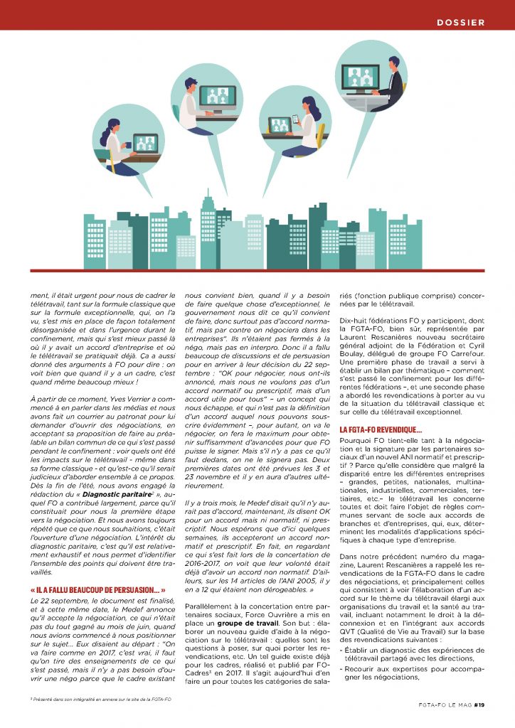 Retrouvez en accès libre le dossier du FGTA-FO Mag’ 116 consacré au Télétravail